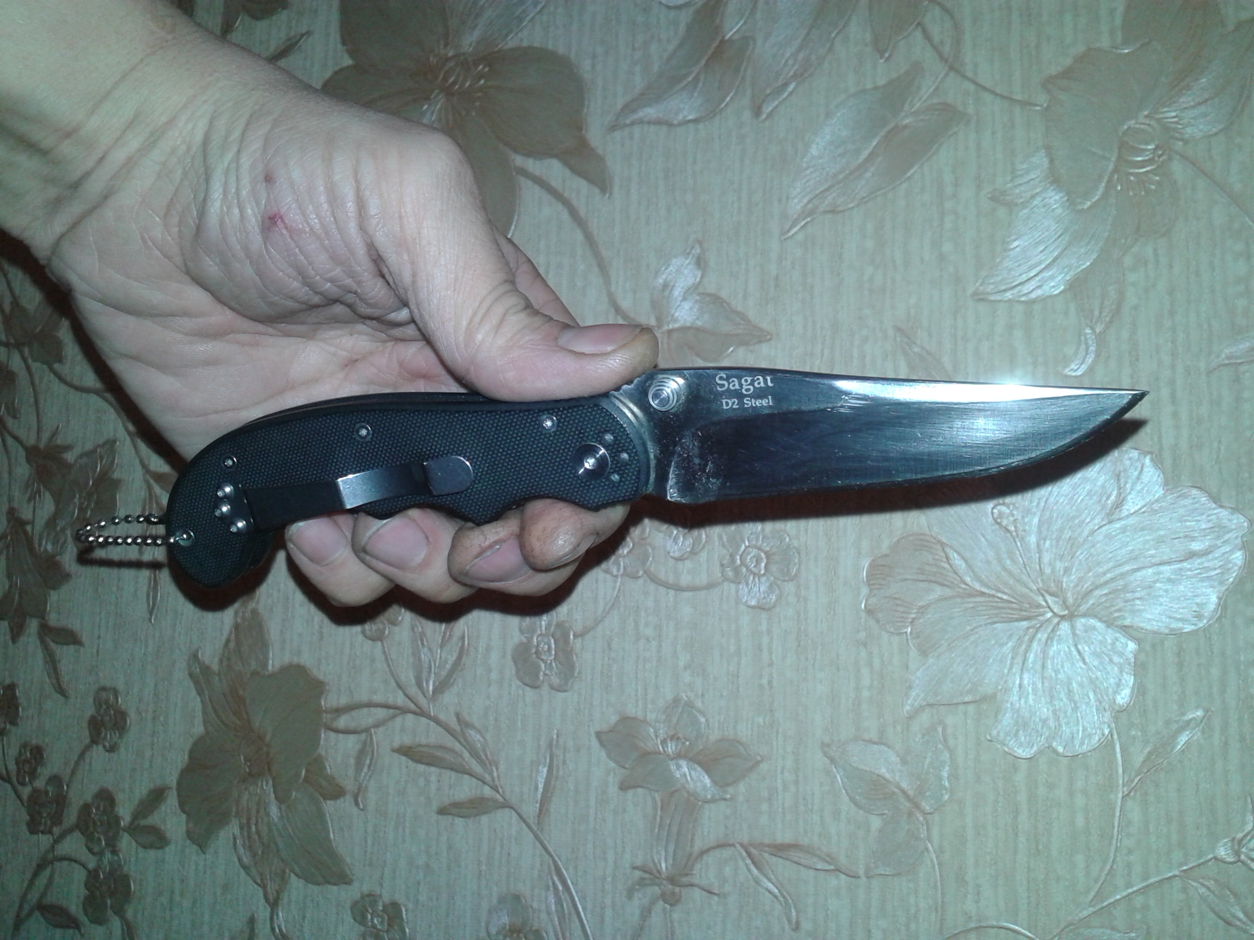 Прикупил вот такого. Бренд Ground Zero, дочерний от Kizliar suprim. Модель Sagat , обещанная сталь D-2. Клинок длина 9.2 см. Толщина 4мм. Фото каким он был при покупке.