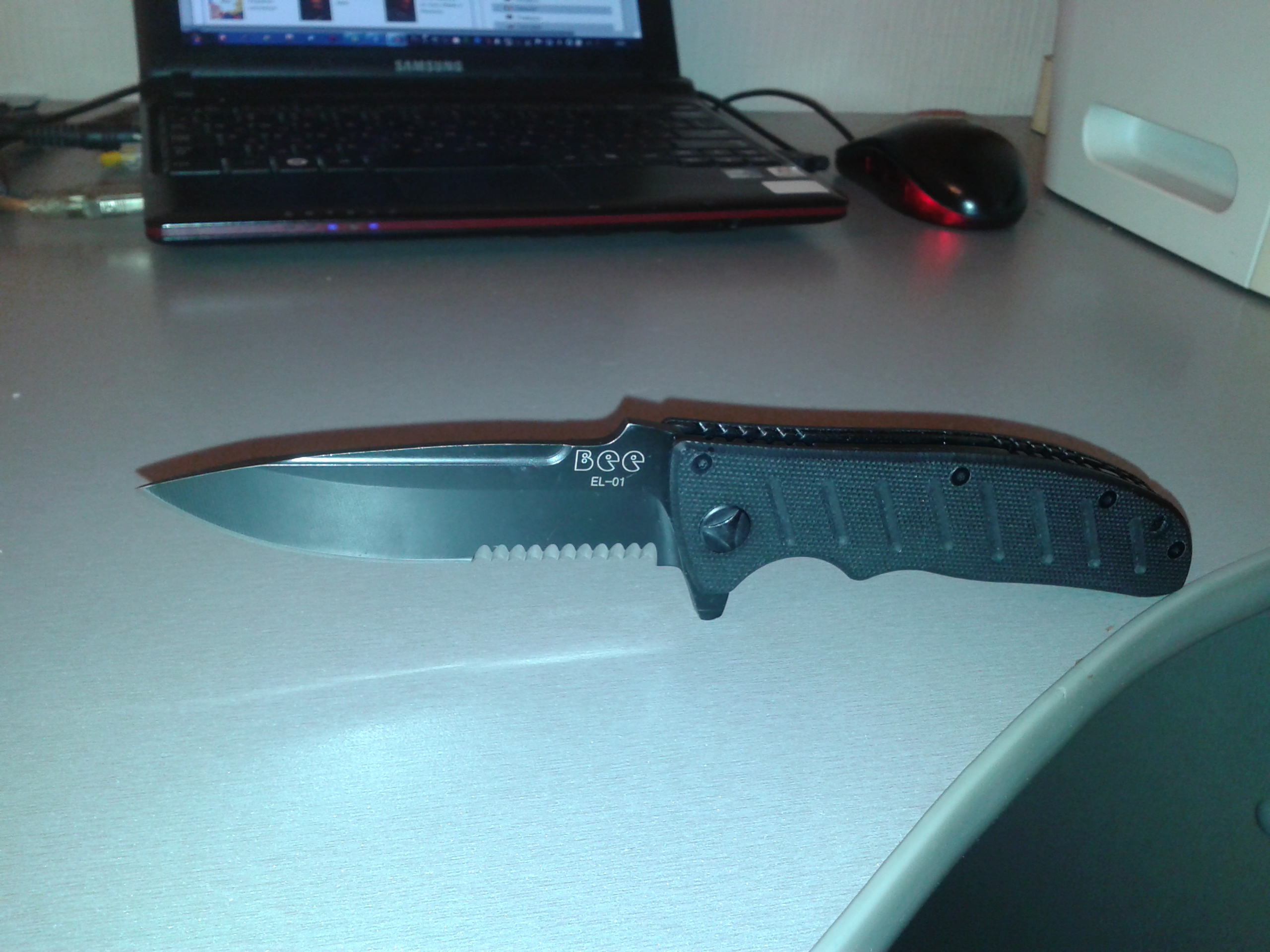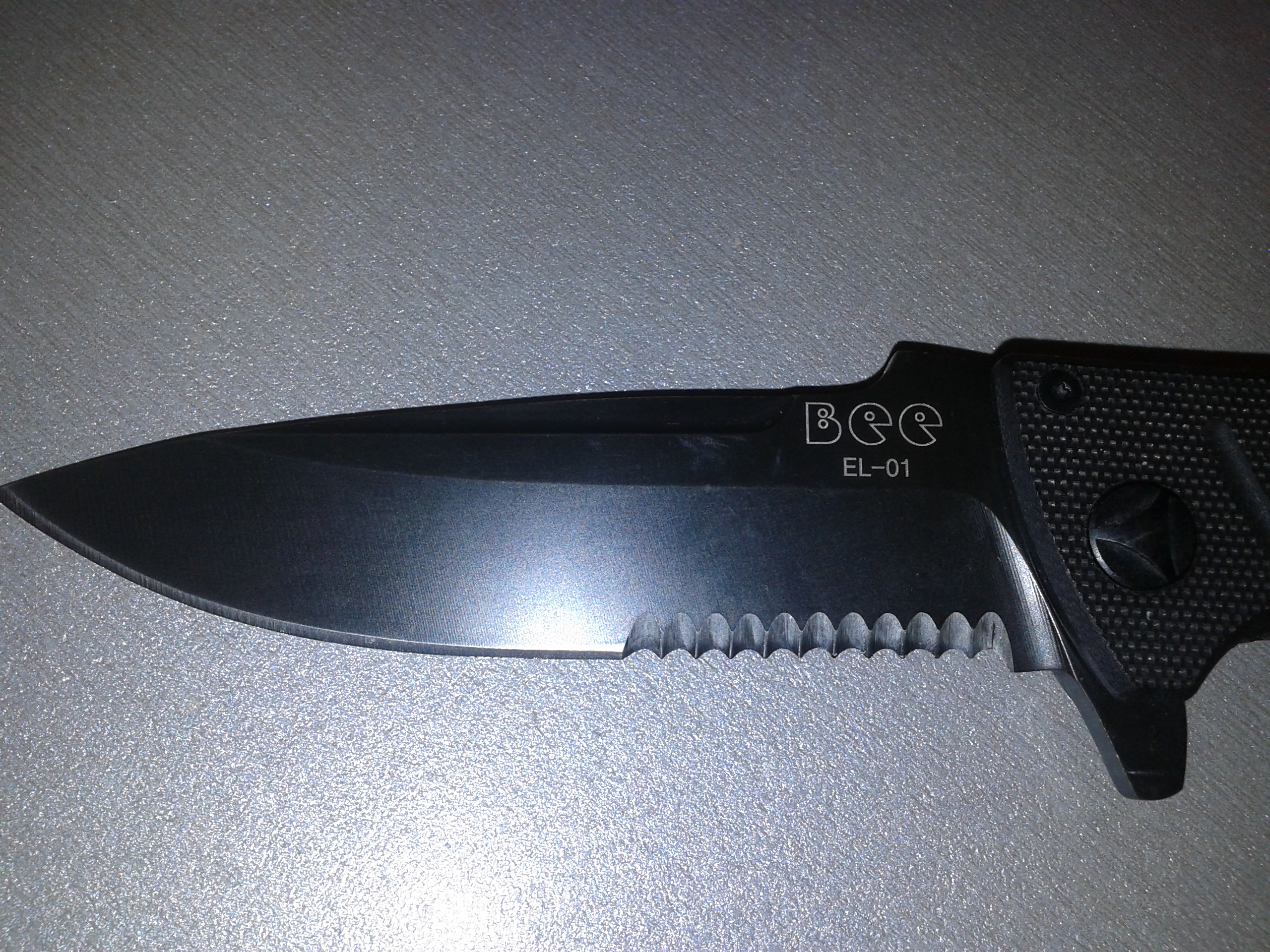 http://www.ebay.com/itm/Enlan-Bee-EL01BA-F...%3D380630565222 копия Boker Magnum A-Stan 440 Blade G-10 Handle 01EL001. http://www.blademaster.co.nz/shop/example1...ding+Knife.html Неплохой, крепкий нож. В руке лежит очень удобно. Плавничок флипера, при открывании, образует хороший подпальцевый упор. Длинна клинка 9.3 см. Толщина 3.2 мм. Сталь заявлена 8Cr13mov твердость 56-58. Из коробки руку бреет, бумагу режет очень бодро. Серейтор порадовал, пластает лучше самого лезвия. Собран нож качественно и аккуратно. Короче отличный нож за те 540 р, что я его купил. (IMG:style_emoticons/default/smile.gif) |