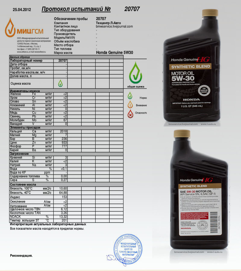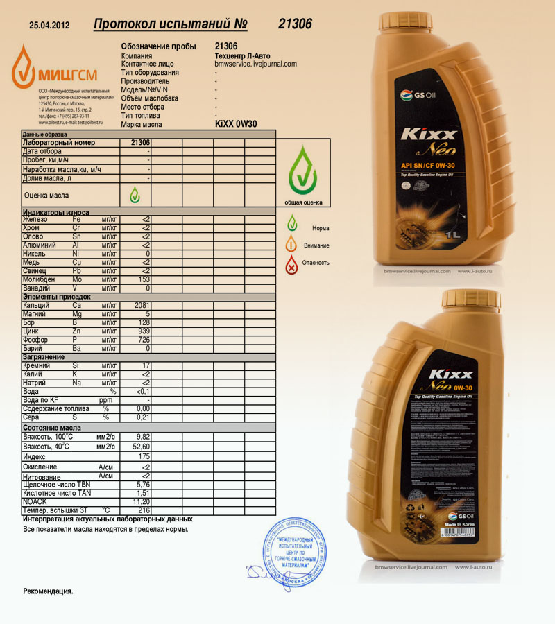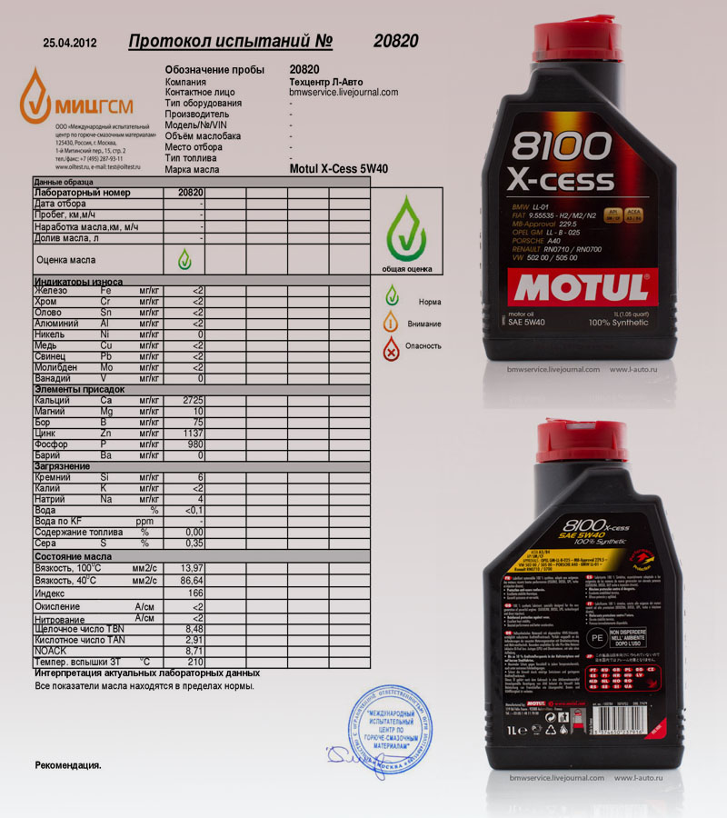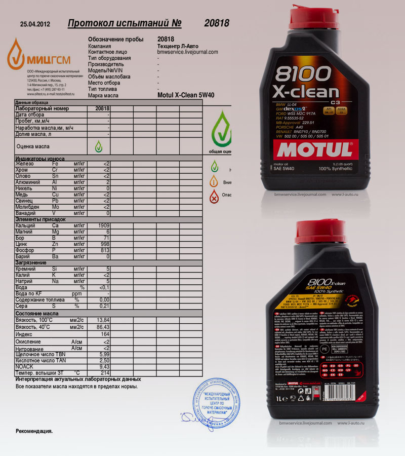 Скользкая тема: КАКОЕ МАСЛО ЗАЛИТЬ? Вынесенным в заголовок вопросом испещерены все автомобильные интернет-форумы. Но количество информации по этому поводу, на моей памяти ни разу не переходило в качество, скорее - наборот. Множество же опубликованных за это время статей, также преследуют какие угодно цели, кроме как дать, наконец, ответ на этот вопрос. Долгое время, мы являлись единственным сервисом, точно знающим "какое масло залить". Скромно остаемся им и по сей день, но сейчас к этому добавилась еще и обширная исследовательская работа, дополняющая базу в несколько сотен детально исследованных двигателей BMW, Mercedes, Audi (видеоэндоскопия высокого разрешения, вакуумная диагностика цилиндро-поршневой группы, анализ и систематизация данных по фактическому расходу масла на пробеге, широкополосная аудиоспектрометрия, данные исследований виброускорений и т.д.). Одним из направлений сейчас является многостороннее исследование физико-химических свойств масел, что в конечном итоге даст исчерпывающий ответ на вопрос заголовка. Начнем с того, что ознакомимся с базовыми понятиями и терминами "масляной" темы предельно понятным, как мне кажется языком. Итак: Вязкость Вязкость по SAE - общепринятый стандарт классификации вязкости моторных масел SAE J300. За цифрами скрываются определенные стандартом диапазоны вязкости, в которые должен укладываться данный образец. Если масло "всесезонное", цифр на канистре указывается две - для "холодного старта" и для рабочей температуры прогретого мотора. Первая цифра отделена от второй литерой "W" - "зимнее". Так как практически все выпускаемые современные масла - всесезонные, общепринятой стала комбинированная кодировка, например: 5W(холодный запуск)40(рабочая температура). В лабораторных условиях, определяется усилие сдвига и прокачиваемости масла при низких температурах - это важно для самой возможности запустить холодный двигатель. Чем ниже цифра, тем масло более жидкое и более приспособлено к условиям холодного запуска. После достижения рабочей температуры (а это уже около 40 градусов и выше - несколько минут после запуска), влияние этого параметра на эксплуатационные характеристики масла становится малозначительным. Важным становится второе значение - кинематическая вязкость при рабочей температуре двигателя (около 100 градусов). Масло, очевидно, не должно быть слишком жидким при рабочей температуре, которая повышается пропорционально нагрузке на двигатель и может достигать 150-180 градусов и даже выше. Например, в области поршневых колец, где масло забирает значимую часть тепла, образовавшуюся в результате сгорания топлива. Слишком тонкий слой может быть подвержен разрыву: он не создает требуемой защиты и приведет к ускоренному износу. Слишком густой - создаст постоянные излишки смазочного материала в области поршневых канавок, что постепенно приведет к коксованию (потере подвижности) поршневых колец при определенных условиях - таких, например, как низкие обороты двигателя, характерные для стояния в пробке. Кроме того, стоит обратить внимание, что высокотемпературная вязкость "40" и "60" отличается в абсолютных цифрах примерно вдвое - это значит, что значительно возрастают потери мощности, которые при прочих равных условиях, могут достигать 10%, что также приводит и к ухудшению топливной экономичности - 