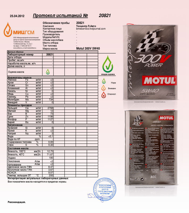 Достаточно распространенное на рынке масло, наряду с продуктами ExxonMobil и BP/Castrol. Как утверждает реклама, является единственным маслом, рекомендованным Ferrari. Более того, несколько владельцев Maserati Quattroporte, о чем мне известно совершенно точно, также льют именно эту марку. Пакет детергентов не самый богатый - около 2400 кальция и следы магния. Противоизносный пакет также стандартен по массовой доле. Щелочное - 7,23, что умеренно для "полнозольного" масла, тем более, что уровень серы стремится к малозольному: 0,23%. Выкипело 8,91%. Базовая основа - масла гидроочистки. Как видно, в свойствах и составе ровным счетом ничего примечательного: интересно, что именно здесь по вкусу двигателям Феррари и Мазерати? Одно из масел, которое постоянно держим в наличии. Пару лет назад мне удалось провести первые сравнительные испытания, позже повторенные на нескольких двигателях - по сравнению с прямым конкурентом - Motul 300V, двигатель работает заметно тише, отклик на газ - резче. Теперь хорошо видно за счет чего: содержание присадки на основе нитрида бора - около 2000 мг/кг(!). Кстати, она постепенно срабатывается - оседает на металле, чего в случае молибденовых препаратов не отмечено. К этому еще вернемся при анализе масляной отработки. Выкипаемость невысокая - 7,35% образца. Щелочное - 7,4%. Основа вероятнее всего: масла гидроочистки легированные полиэфирами, как и в случае с Motul 300V. Эти два масла - единственные, прямо заявляющие на содержание эстеров в составе и, что характерно, дополнительно содержащие модификаторы трения в составе пакета присадок. Продолжение следует... C нетерпением будем ждать от автора данных тестов продолжения испытаний, и обязательно продублируем их здесь! (IMG:style_emoticons/default/smile.gif) |