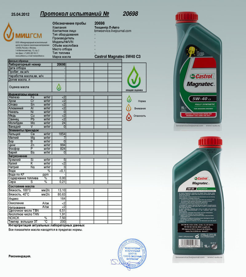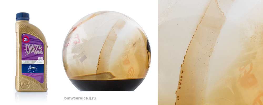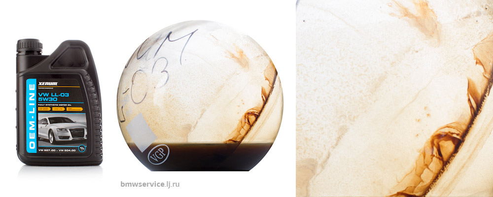 Малозольное масло с соответствующим пакетом присадок. Выкипело 7,5%. Щелочное 6,51. Magnatec - серия 100% масел гидроочистки. Масло той же серии, но без малозольных ограничений. Щедрый пакет кальция - около 3300, что сказалось на щелочном числе - 9,35. Образец более жидкий, выкипело 8,91%. Малозольный образец "старшей" линейки масел. Основа - только масла гидроочистки. Щелочное - 5,11. Выкипело 9,64. Пакет присадок ничем не примечателен. Американский собрат без малозольных ограничений. В пакете присадок присутствуют Бор и Молибден. Выкипело 10,46% образца. Щелочное - 9,21. Основа - масла гидроочистки. Одно из немногих "густых" масел на рынке, рекомендованных для использования в "спортивных" двигателях М-серии BMW. В щедром пакете присадок присутствует немного молибдена и бора. Декларируется всего до 25% содержания масел гидроочистки. Все основания предполагать, что основа масла - ПАО с присутствием загустителя в составе пакета присадок. Образец, разумеется, выраженно густой - выкипело всего около 5%. Щелочное - 9.53. Перед нами то, что в народе называется "дилерским маслом BMW". Составной пакет кальций+магний обеспечил почти 9% щелочного. Выкипело всего 7,78%. Наиболее вероятная основа - ПАО. Схожесть пакета присадок с Castrol, равно как и вопрос об идентичности т.н. масел "BMW Orig." маслам Castrol аналогичной вязкости, линейка которых, к слову говоря, совсем недавно обновилась, пока оставим открытым, но высокая вероятность этого факта присутствует - декларируемые физико-химические данные совпадают абсолютно. Еще одно ОЕМ "дилерское" масло с немалой ценой, красивой банкой и гордой надписью. Серы - более чем достаточно, не в пример пакету моюще-диспергирующих присадок, что хорошо видно и по значению щелочного числа. Выкипело аж 12,6%, что даже для достаточно жидкого масло совсем не мало. Сложно предполагать, за что именно покупают такие масла и покупают ли их вообще. В данном случае, констатирую - восторгаться, учитывая цену, особо нечем. Еще одно "оригинальное" масло. Пакет противоизносных присадок разбавлен бором и молибденом. Щелочное на хорошем (почти предельном) уровне для малозольных масел, вот только почему-то серы многовато. Выкипело 13,3% - своеобразный рекордсмен. Изначально у нас не было желания встраивать в тест большое количество ОЕМ под "оригинал" по причине заведомой идентичности известным маслам при заметной разнице в цене. Если в вас еще сохранилось желание переплачивать за бренд - не могу вам в этом препятствовать. Но более не вижу смысла тестировать очевидное. Малозольный Pentosin. Как говорится, если вы все еще думаете, что Pentosin это только жидкость в ГУР, тогда мы идем к вам. Реально малозольный - пакет присадок у этого масла самый бедный - щелочное 4,48. Как сказали продавцы "завалялось - распродаем то, что есть и с этой маркой завязываем". Каким-то чудом, у умеренно жидкого масла - примечательно низкая испаряемость - всего 6,4%. Не выпарились присадки, которые взмешиваются на минеральной основе?! В любом случае - продукт для гурманов - цена на уровне самых дорогих образцов теста это подтверждает. "Ликви моли" без "моли" - самое дорогое масло линейки престижного производителя не содержит десульфида молибдена. Кроме того, моюще-диспергирующий пакет представлен средним содержанием кальция - всего около 2500 мг/кг (щелочное немногим менее 7). Зато противоизносный в сумме почти 2200 мг/кг - один из 