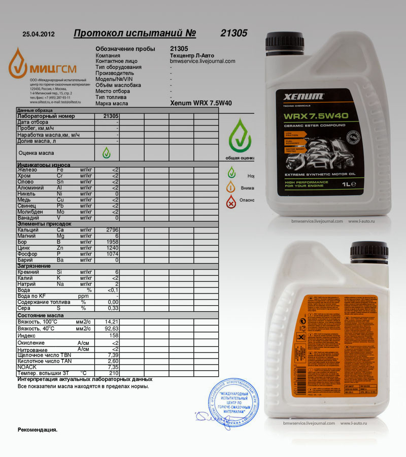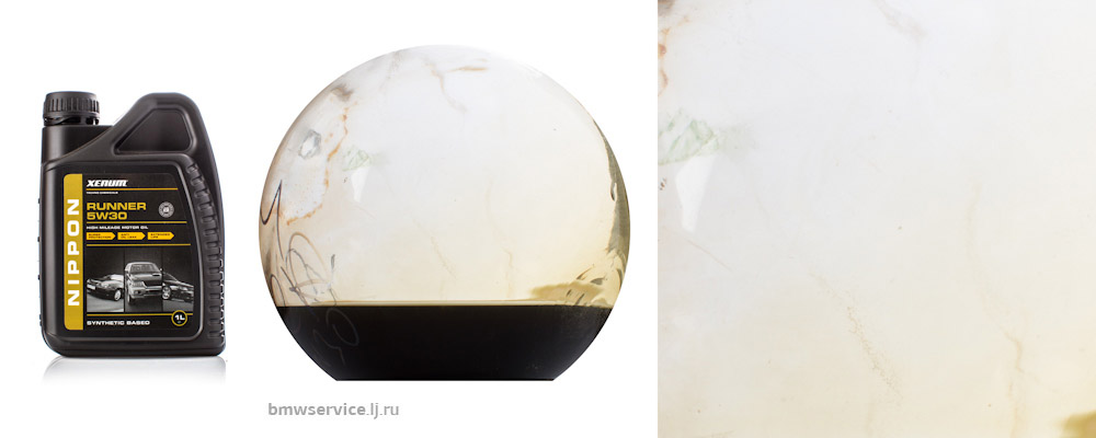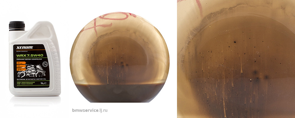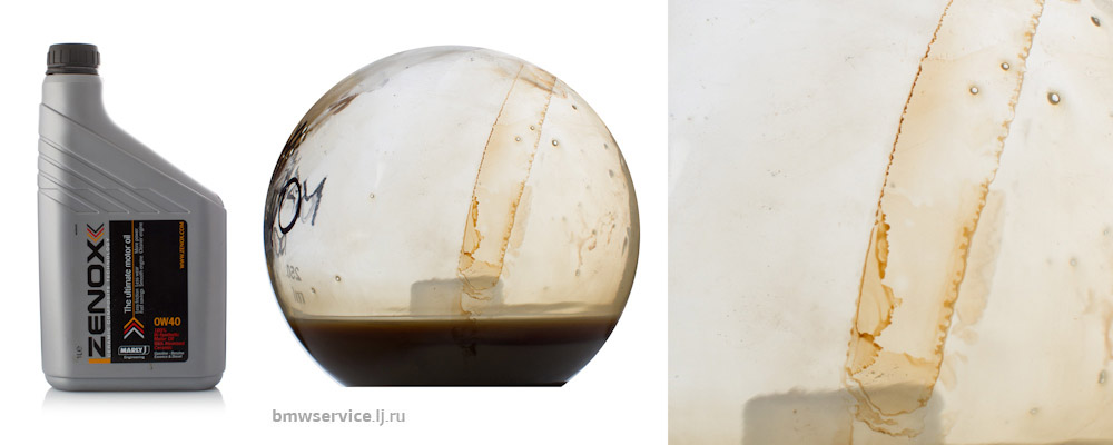 XENUM WRX 7,5W40 Отложения. Коллоидный раствор загустился. Сравните с LM Molygen. XENUM GPX SAE 5W40 Отложения, загущение. Сравните LM Molygen, Xenum WRX. XENUM X1 SAE 5W40 Отложения XENUM RUNNER SAE 5W30 XENUM GM DEXOS 2 SAE 5W30 Отложения. Загущение. XENUM VW LL-03 SAE 5W30 Отложения MARLY ZENOX THE ULTIMATE MOTOR OIL SAE 0W40 Отложения. Органолептика практически полностью аналогична XENUM WRX (что совсем неудивительно, учитывая одни корни обоих продуктов), за исключением того факта, что более жидкий ZENOX (0W40) стекает на дно колбы практически мгновенно и колба на фото "чистая" и прозрачная. Более густые масла при повороте колбы всегда оставляют пленку (см. результаты масел 10W60, 5W50). Изначально этот нюанс не учитывался при фотографировании, полного истечения масла никто не дожидался, лучше уточнять по каждому конкретному случаю. В прочем, изначально ориентиры были на полимеризацию, а не на визуальные артефакты. К слову говоря, масло заявлено как LowSAPS, с веером допусков. |