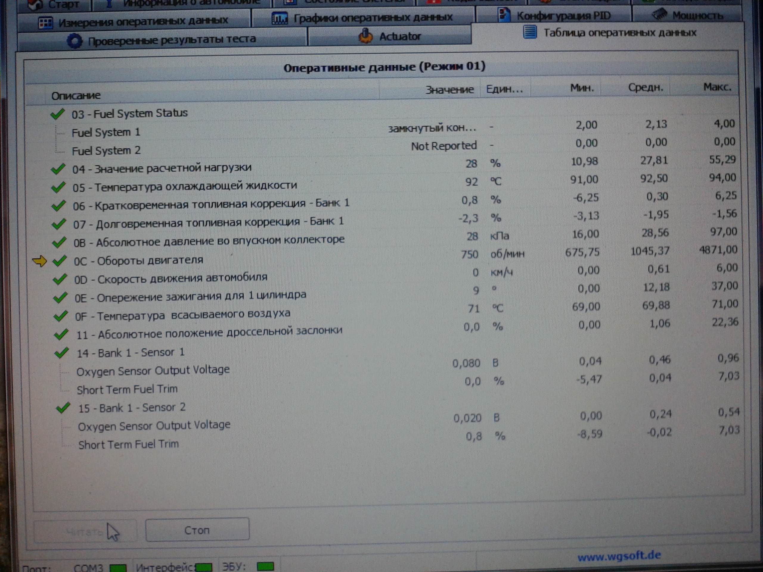 http://www.forum.lancer-club.ru/index.php?showtopic=210620 - вот одна из аналогичных тем, стоит почитать всю. Почитал тему. Еще знаю, что при разбитой шестерне давление во впускном коллекторе лезет выше 33 кПа и топливные коррекции существенно уходят в минус. Но у меня эти параметры в норме. Вот скрин. Какие будут мысли? |