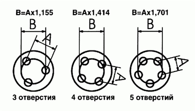 Кол-во скачиваний: 1622J - закодированная информация о конструктивных особенностях бортовых закраин обода (углы наклона, радиусы закругления и т.п.). Н2 - буква Н (сокр. от Hump) указывает на наличие кольцевых выступов (хампов) на полках обода, которые удерживают бескамерную шину от соскакивания с диска. В большинстве случаев на колесе встречаются два хампа (обозначение Н2), но хамп может быть и один (Н), иметь плоскую форму (FH – Flat Hump), быть асимметричным (AH – Asymmetric Hump), комбинированным (CH – Combi Hump)… Бывают колеса и без хампов вообще. 5/112 – PCD (Pitch Circle Diameter). Цифра 5 - количество крепежных отверстий в диске для болтов или гаек (наиболее часто встречаются колеса с количеством крепежных отверстий от 4 до 6, реже их бывает 3, 8 или 10). 112 – диаметр окружности в мм, на которой расположены центры крепежных отверстий. Существует ограниченное число таких диаметров (примеры – 98, 100, 112, 114,3, 120, 130, 139,7 и некоторые другие, они применяются автопроизводителями либо по традиции, либо как наиболее подходящие для определенных типов автомобилей – так, размер 139,7 характерен для пикапов и внедорожников). Изредка встречаются колеса с двумя «наборами» по 4 или 5 крепежных отверстий, расположенными на двух разных диаметрах. В случае с 4 крепежными отверстиями автомобиля - это расстояние между центрами двух диаметрально противоположных отверстий. Сверловка отверстий под гайки и болты в дисках производится по двум параметрам. По диаметру на котором расположены отверстия и по размеру между отверстиями. Одна величина соотносится к другой в прямой зависимости и зависит от количества отверстий для крепления диска. На картинке ниже можно посмотреть показатель данного соотношения в зависимости от количества отверстий. Но эта характеристика более применима для производителей, так как фактически это алгоритм правильного обозначения исполнительных размеров, а вот для обывателей стандартное обозначение PCD - количество отверстий и расстояние между ними, например 4х100 или 5х114,3 и т.д. Отверстия крепления на диске сверлят с допуском в плюс по диаметру, при этом можно ошибиться в выборе PCD, если он отличается от штатного на 1-2 мм. Например, на ступицу с PCD100/4 вполне можно надеть колесо PCD98/4 (98 мм от 100 что говорится невооруженным глазом не отличишь). Такая замена недопустима. В этом случае из всех гаек (или болтов) только одна будет затянута полностью; остальные же отверстия "уведет" и крепеж останется недотянутым или затянутым с перекосом - посадка колеса на ступицу будет неполной, диск не будет прилегать к ступице, что скажется на его отклонении по вертикале. При движении такое колесо будет "ходить восьмеркой", кроме того, не полностью затянутые гайки будут откручиваться сами по себе. Еще одно предупреждение! Ни в коем случае не пытайтесь «подогнать» крепежные отверстия колеса с помощью сверла или круглого напильника – этим вы безнадежно испортите колесо, и его можно будет только сдать в утиль. Крепежные отверстия выполняются с высокой точностью, которую без специального станка обеспечить невозможно. При сомнении в величине PCD у колеса с отсутствующей маркировкой можно попытаться измерить данный диаметр штангенциркулем. ET – (мм) данным обозначением указывают вылет диска. Вылет - это размер между посадочной (привалочной) плоскостью диска колеса, прилегающей к ступице автомобиля, и вооб