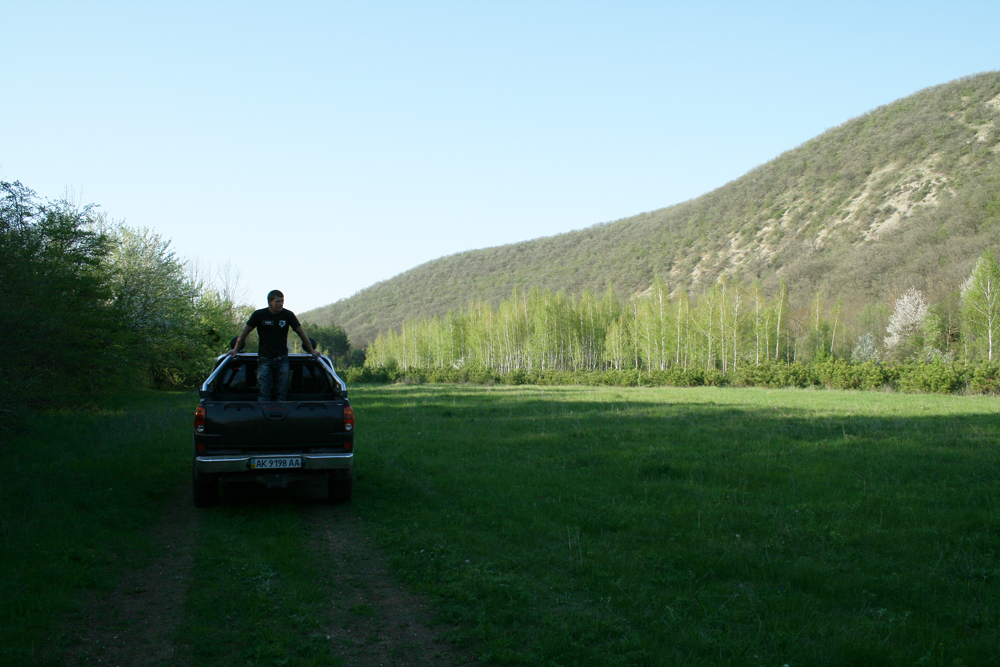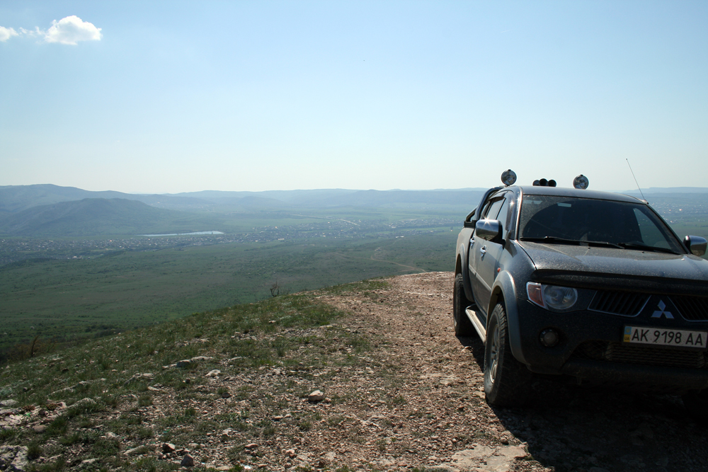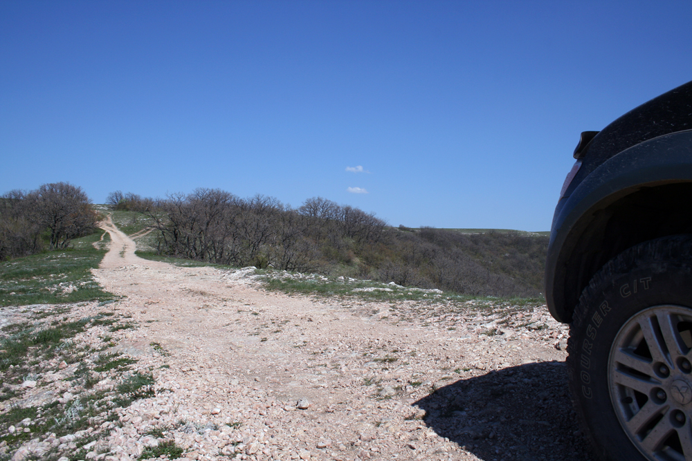 Прямо, в далеке, Симферополь Затем решили спуститься вниз и заехать на это холм (IMG:style_emoticons/default/biggrin.gif) Виды с холма Со стороны карьера (внизу справа) мы и заезжали Следующая точка маршрута находится слева вверху Ещё чуток... Забрались... Посетили Курган Славы погибшим партизанам (фото не с этой поездки) Рядом, около 200м. партизанский ДОТ, думали современная интерпретация, хрен - в бетоне дикий камень разного размера. Дальше понесла нас нелёгкая в Межгорье, от там мы нашли приключений... Колея от ГАЗ66...это ЗЛО, поехал в объезд...ток и он упирался в колею, правда всего за 12 метров до конца... Лопата "FISKARS" друг и соратник, ну и + крепкие руки (на фото Иван-друг семьи, ОЧЕНЬ хороший парень, такие ща редкость: не..., не..., не..., ток по женщинам, можно - ишо не женат) Ну дальше проще...мелкие броды, колеи, пригорки Ну и закончили путешествие живописной поляной На полянке подошёл отец многочисленного семейства: -Вы отсюда заезжали ? -Нет, с плато Оглядев нас, засранную Люську, задумчиво спросил: -Я на Х-trail проеду глубже, в лес ? ....мы его культурно послали обратно на полянку... |