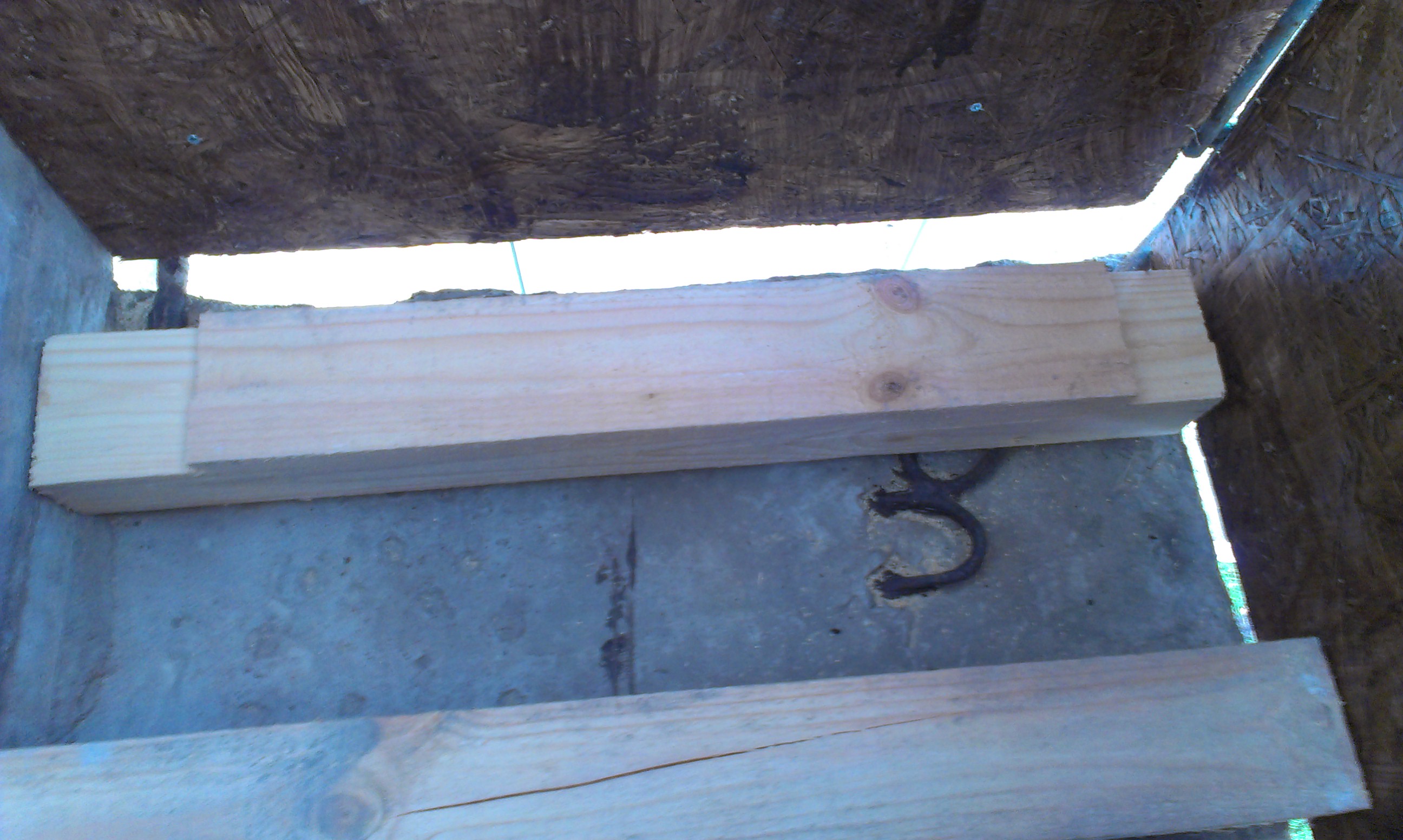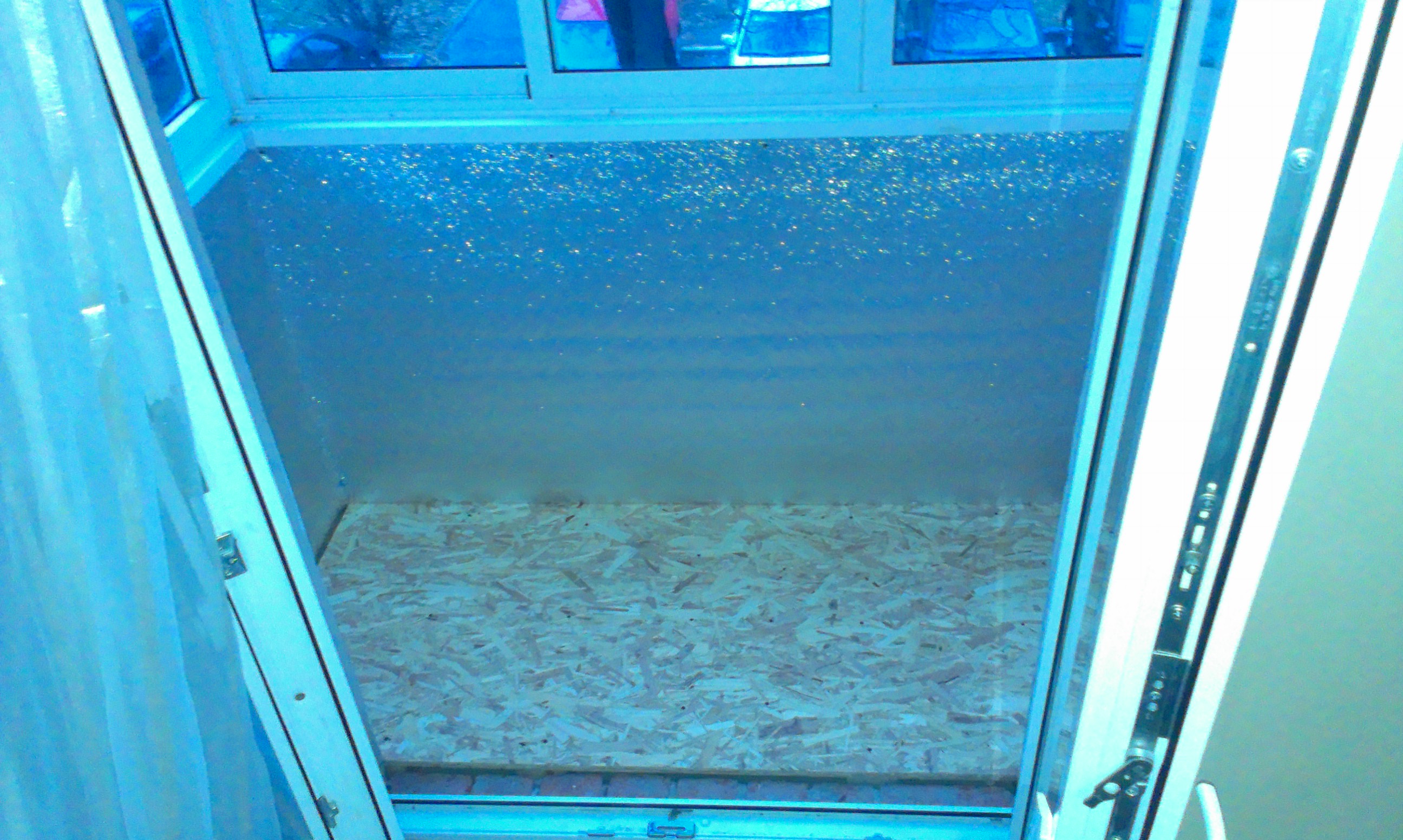 Вот такая пропитка была для ОСП. Теперь процесс монтажа фальшпола. Вот такая у нас плита с петлями, за которые их когда-то подъемный кран поднимал. Берем брус сотку (100 на 100 мм), предварительно раскроенный на нужные фрагменты. Делаем в нем прорези на высоту торчащих из бетонной плиты петель... И вуаля... Встает как родное влитое. Заодно и щелочку прикрывает. Потом... Не бейте меня, но супруга просто заставила израсходовать какую-то оставшуюся после ремонта утеплительную хрень. Я не знаю, как она называется. Типа поролона с наклеенной фольгой. Обклеил ей бока - ветрозащита. После этого стало намного теплее на балконе. Оставил небольшие щели специально. Из них прилично поддувает, так что гнить ничего не должно. Далее распределил равномерно бруски и положил на них в два слоя ОСП необработанный. Пол и стены внутри в черновом варианте готовы. В ближайших планах - обшить профилем снаружи (профиль с лета ждет своего часа). Затем на пол фанеру толстую обычную. На неё линолиум. Далее уже будет чистовая отделка. |