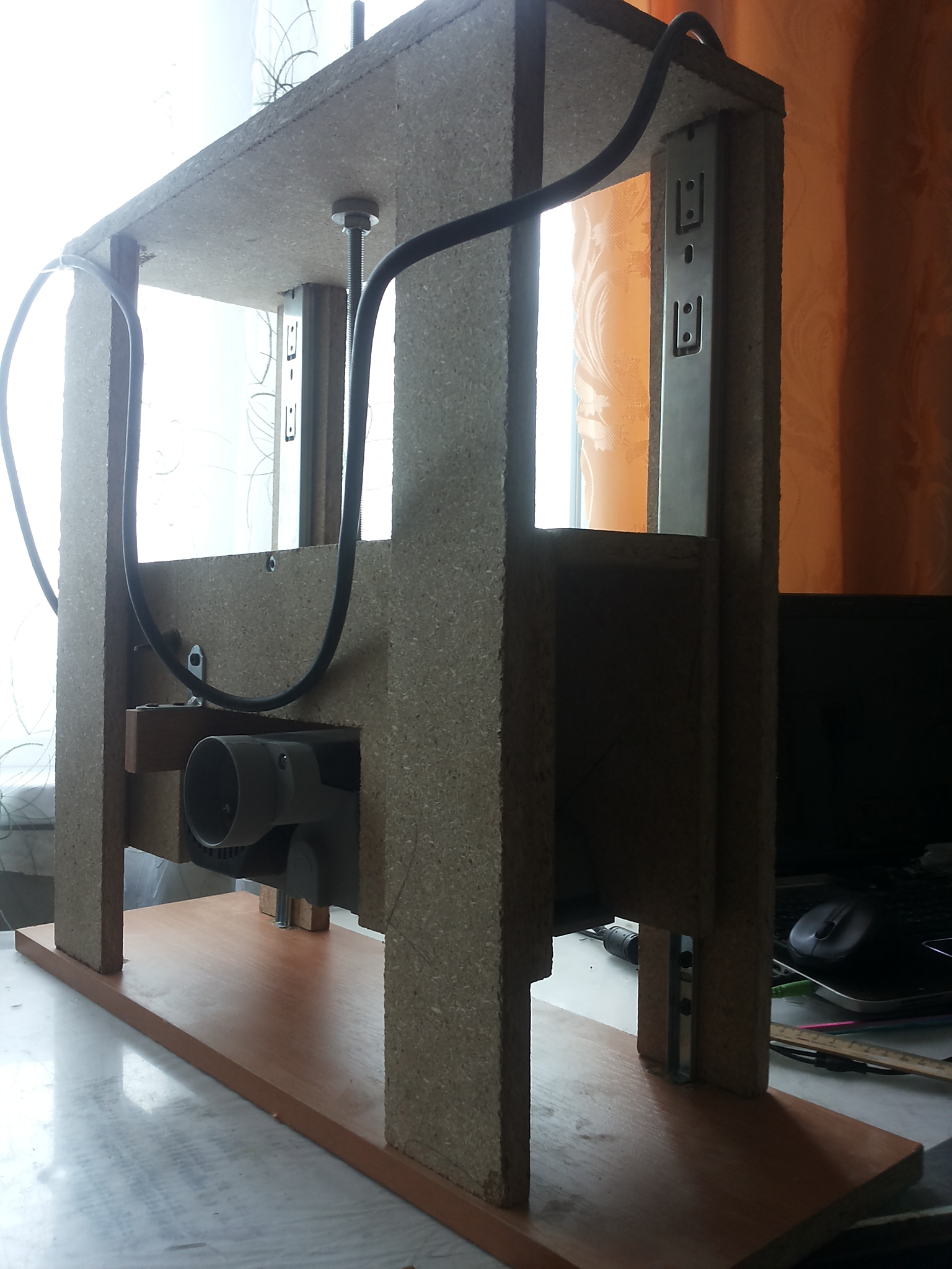 Вот что получилось: Не правильно расчитал размер направляющих,поэтому рабочий диапазон получился достаточно большой от 0 до 300мм(высота) 110мм(ширина),в моем случае нужен до 10мм(высота). |