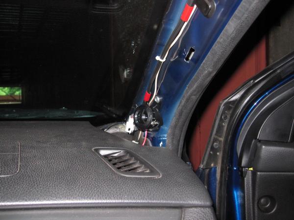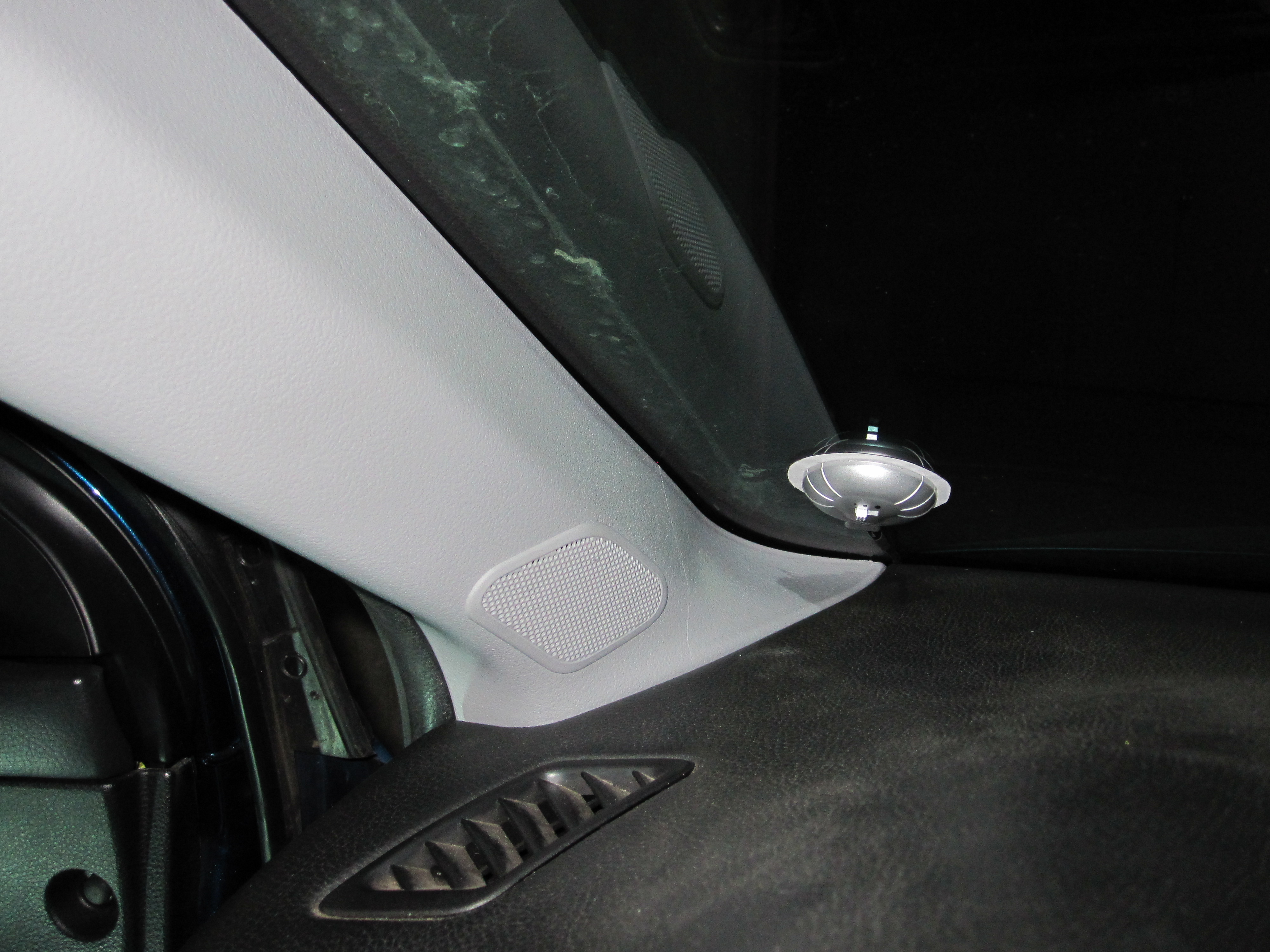 Вот так крепятся пищалки родными саморезами (в стойках с завода есть закладные пластиковые втулки):