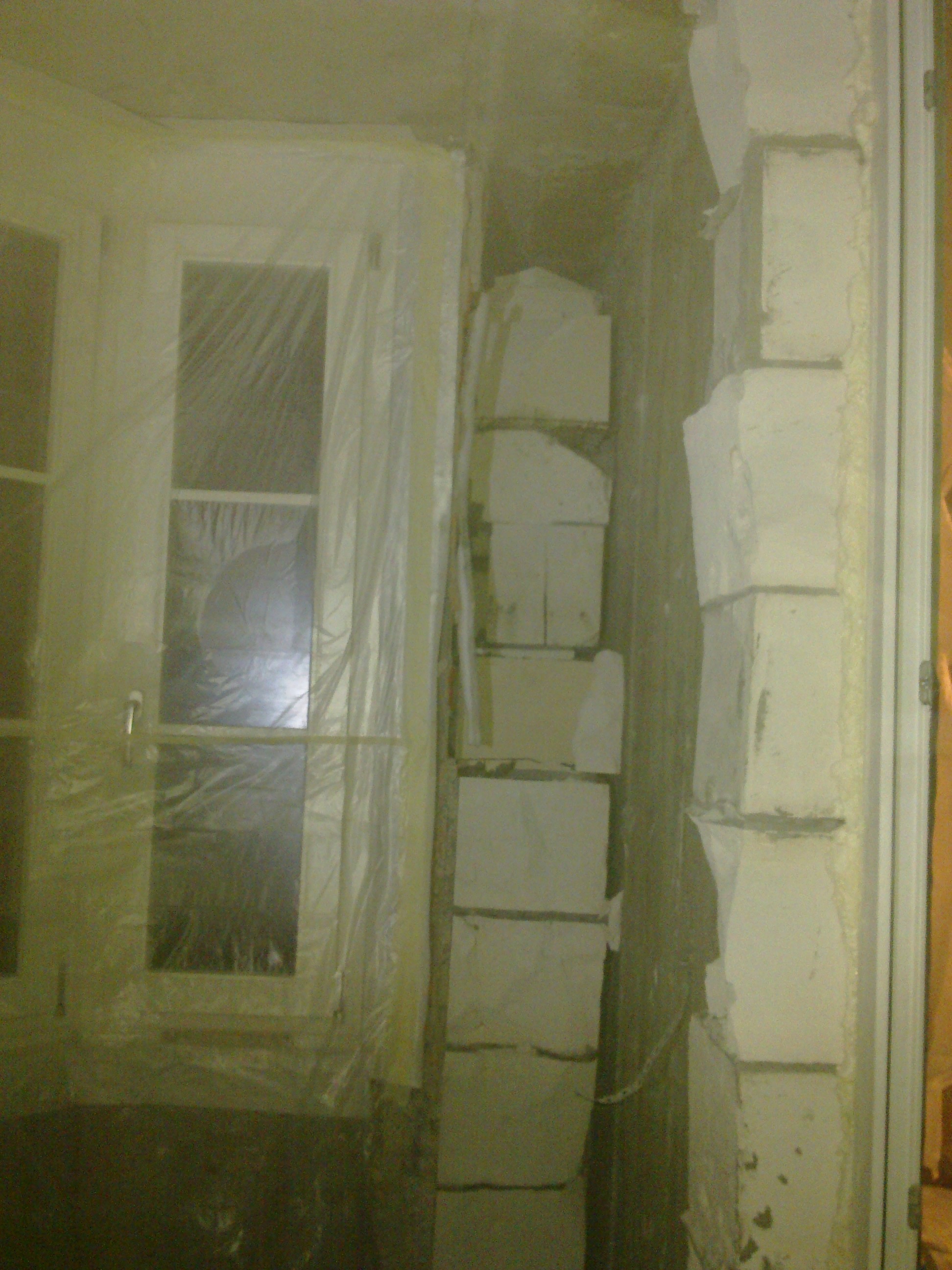 Прохладненько в ней даже работать. На мне байковая рубаха поверх футболки. Но ноги в кроссовках и тёплых носках часов за 11 застывают основательно. Все кричат: Батареи надо менять. Батареи. Начинаем переоборудовать лоджию. Вскрываем стену. И .... удивляемся примерно так, как если бы вы меня в колготках увидели (IMG:style_emoticons/default/laugh.gif) Нижние пять рядов нормально лежат. А вот верхние просто закинуты. Причём самый верх слегка заполнен обрезками. Но с соблюдением технологии - сетка через каждые три ряда... брошена )) Со второй стороны лоджии картина ещё более удручающая. Присутствуют только четыре сложенных ряда, а поверх них просто пустота, в которой болтаются ни к чему неприкреплённые листы пенопласта. Жаль сфоткать мысль пришла только потом... Торопились... |