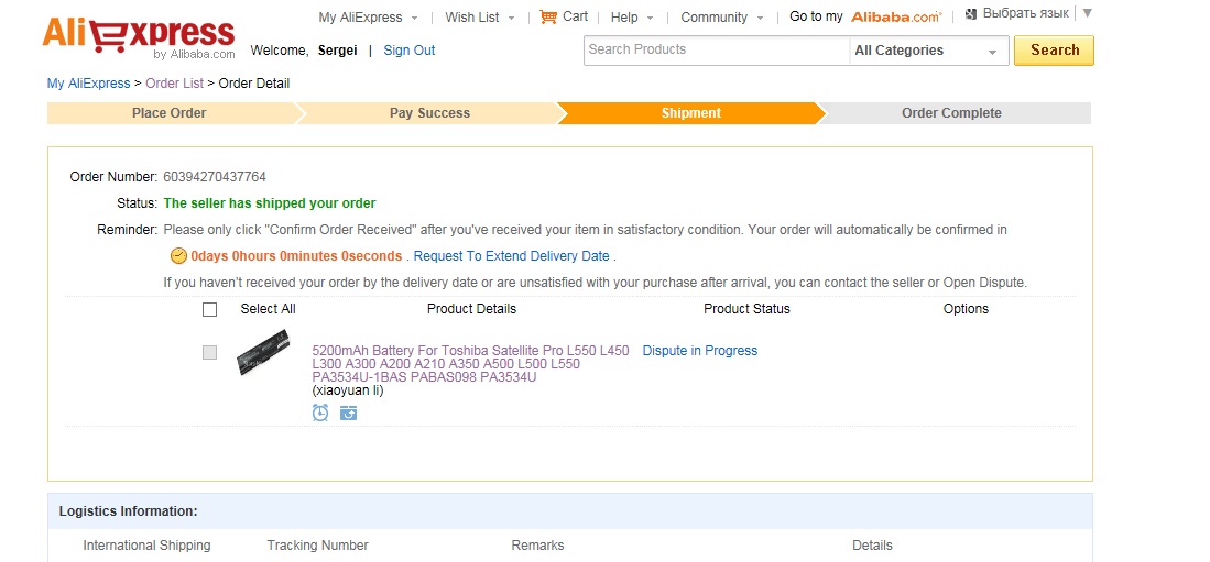 А как это сделать. Я когда получил батарею и проверил её сразу ткнул открыть диспут. Там указал что товар получен и что не работает должным образом. В коментариях описал подробно и приложил фотку. У Вас там указано "Хочу вернуть товар обратно" - вот он и включил счетчик на обратную доставку с трекингом. Насколько я помню, есть возможность изменить диспут - либо попробовать выбрать что-то типа "товар не работает", либо увеличить сумму возврата на стоимость обратной пересылки. Я думаю, что тут лучше подскажут. Одно ясно - если сейчас закрыть диспут, продавец получит свои деньги и больше его ничего волновать не будет. Заказ будет считаться выполненным и нового диспута уже не открыть. И повнимательнее с условиями диспута - китаец может изменять сумму (чаще всего они так и делают, т.е. обнуляют) но при эскалации диспута в претензию администрация иногда возвращает первоначально заявленную сумму. С обратной пересылкой не еще не приходилось связываться. А свой чехол для коммуникатора, о котором писал в начале темы, я получил на новогодних каникулах (IMG:style_emoticons/default/smile.gif) |
