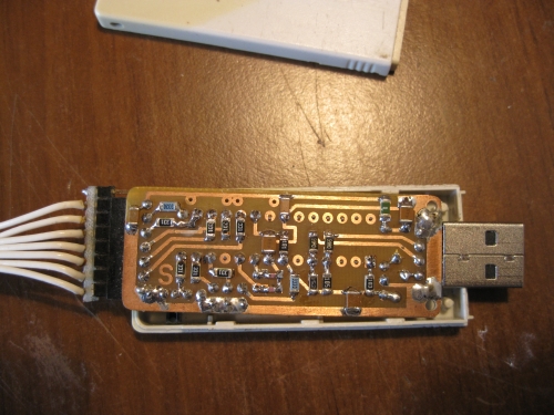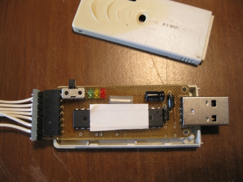 Фотографии печатной платы и собранного программатора: